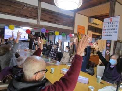 本日も和みの幸望庵はバンザイ三唱でスタート