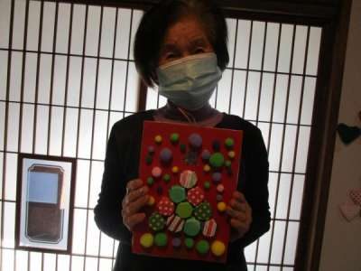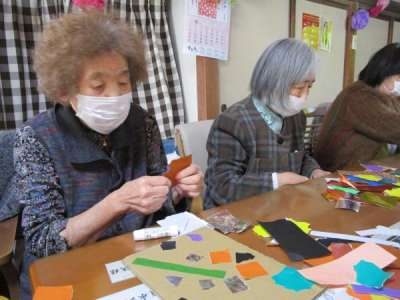 折り紙をちぎって台紙に貼っていきます