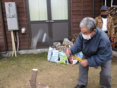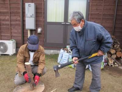 昔はよく薪割りをしてたという父