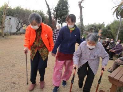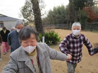 手をつないで仲良くゆっくりと歩きます