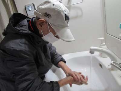 石けんでよく泡立てて手洗い