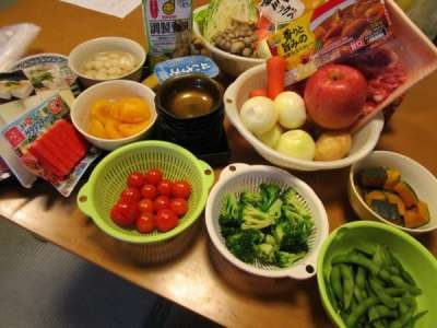 キャベツ、玉ねぎ、人参や豚肉などカレーやスープの