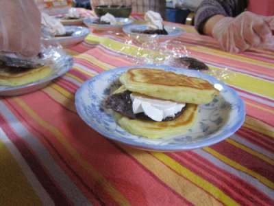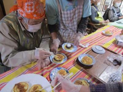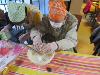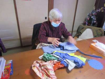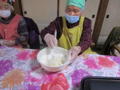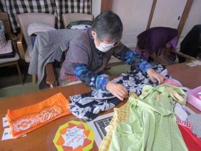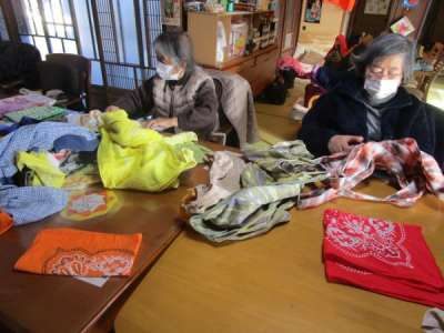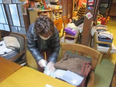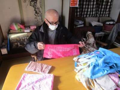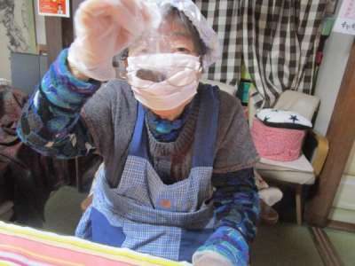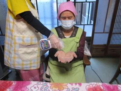 エプロン三角巾マスク手袋に、ちゃんと消毒して
