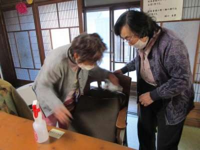 お昼休みにも、こまめに消毒を行っています。