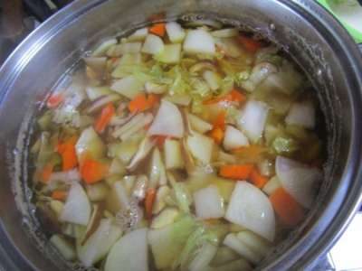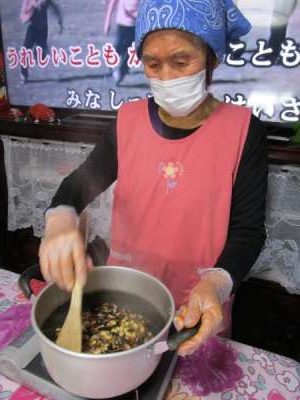 ビタミンÐ豊富な大豆も入れて煮ていきます