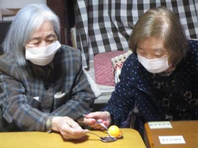 最後はもう少し難易度を上げて箸でピンポン玉掴み