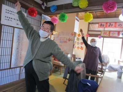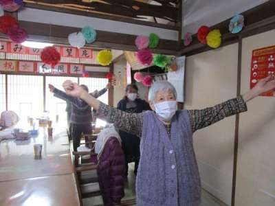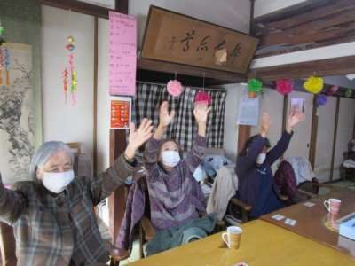 毎朝恒例のバンザイで肩の凝りをほぐして