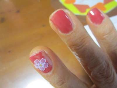 爪には桜のシールをつけて・・・