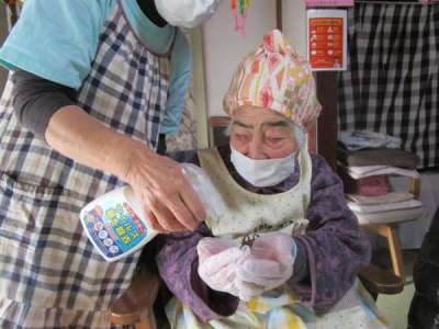 エプロン・三角巾・手袋・マスクをつけて身支度を整えて