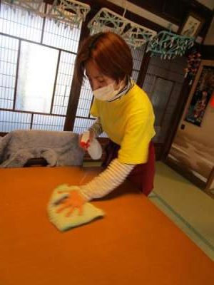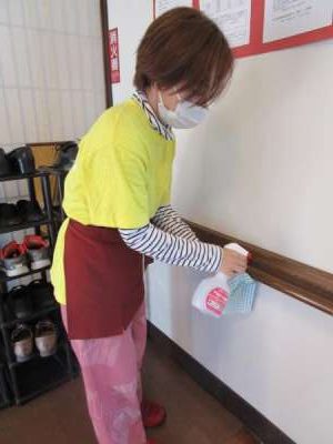 手すりやテーブルも適宜消毒しています