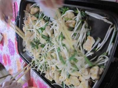 鶏肉・もやし・にらを入れて炒めますダッシュ (走り出すさま)ダッシュ (走り出すさま)ダッシュ (走り出すさま)