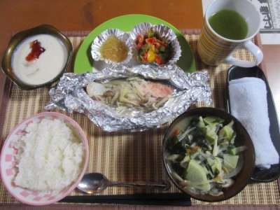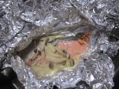 こちらはメインの鮭ときのこを一緒にホイルで包み