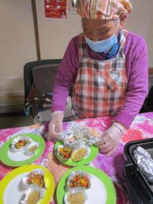 午前のレクリエーションは昼食づくりレストラン