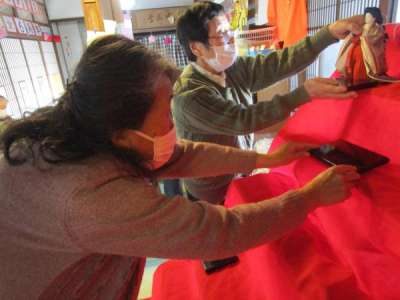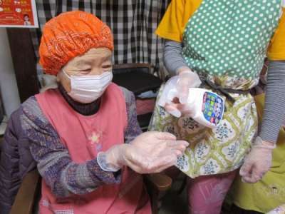 エプロン・三角巾・手袋・マスクをつけて身支度を