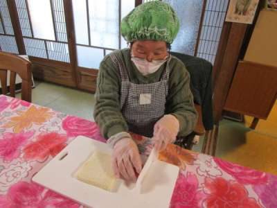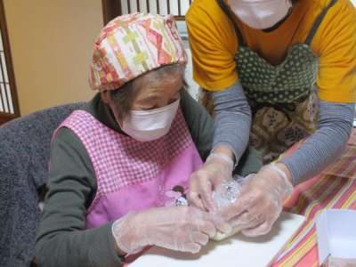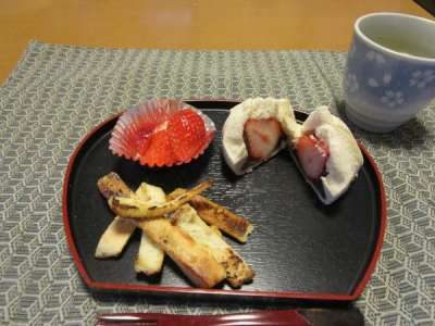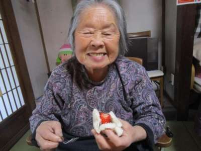 午後はおやつの「いちご大福」作りに挑戦🍓