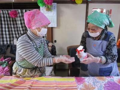 身支度整え、手指消毒を行ったら昼食作りの開始