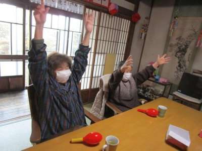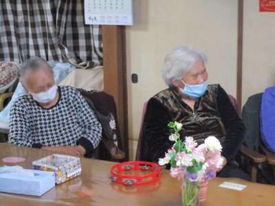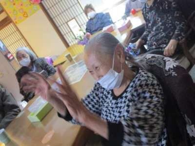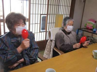 タンバリン・鈴・マラカスを手に曲に合わせて