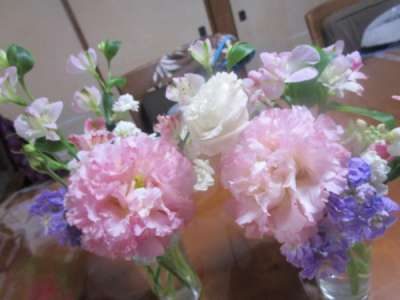 テーブルにはトルコ桔梗・ストックの花を・・・