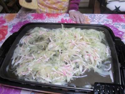 玉子丼の具材もホットプレートで柔らかくなるまで