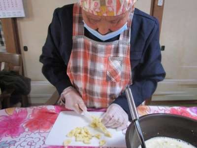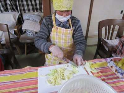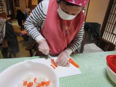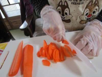 本日も、午前レクリエーションは昼食作りです