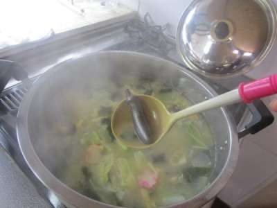 お野菜やワカメなどたっぷりわーい (嬉しい顔)