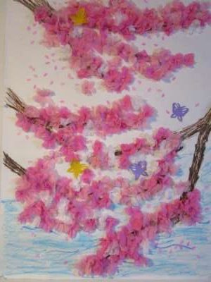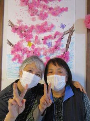 こちらは、昨日出来上がった桜の壁画ですハートたち (複数ハート)