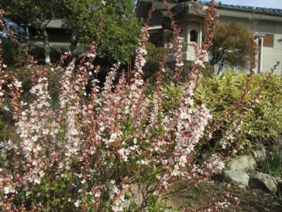 今日も暖かくなりましたね芽庭のピンク色の雪柳も、