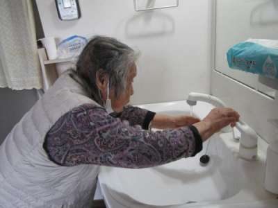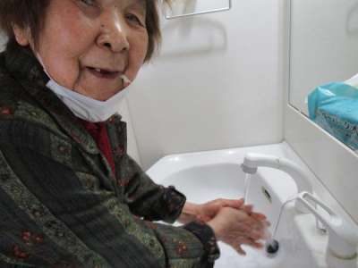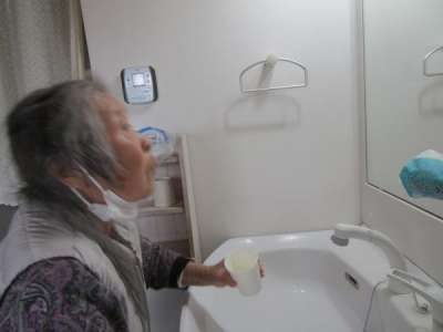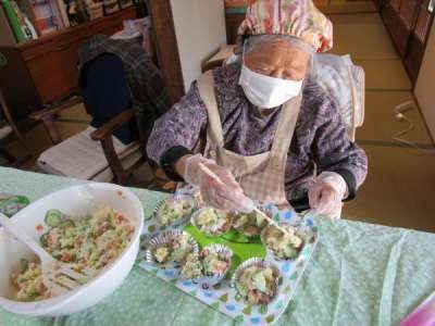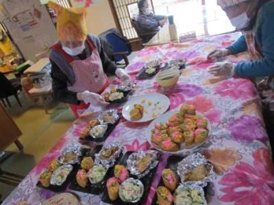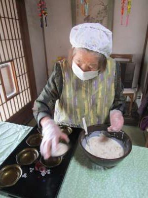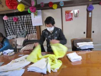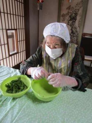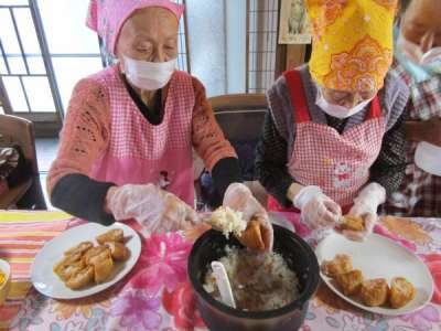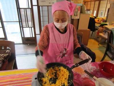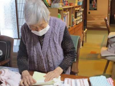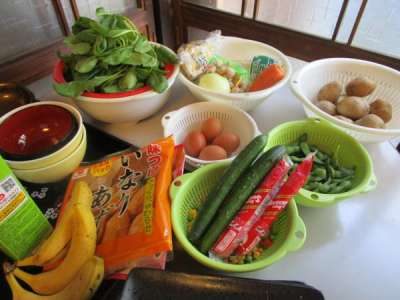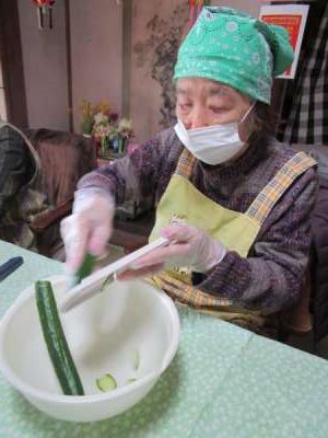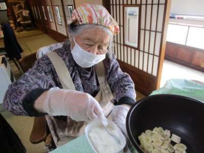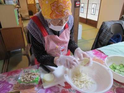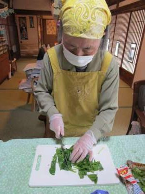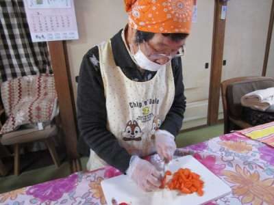キノコや玉ねぎ 味噌汁の具材を切っています