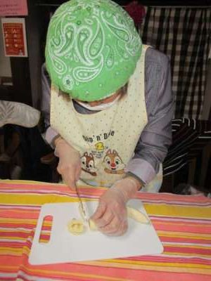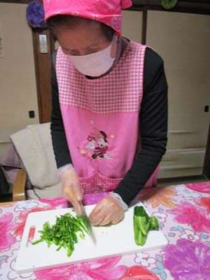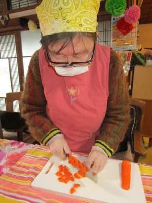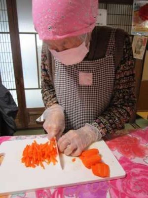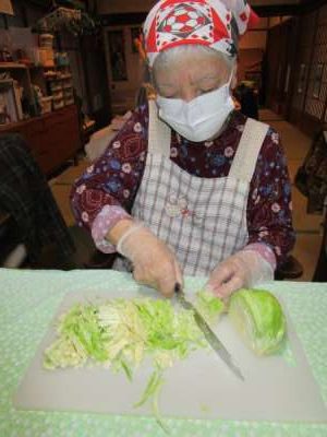 きゃべつや人参、きのこなど味噌汁の具材を切ったり🔪