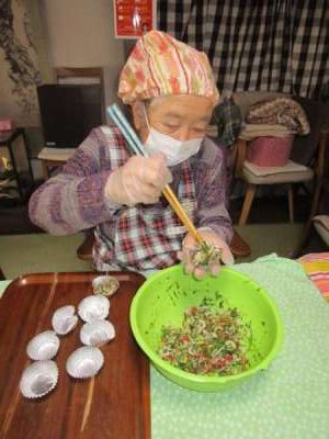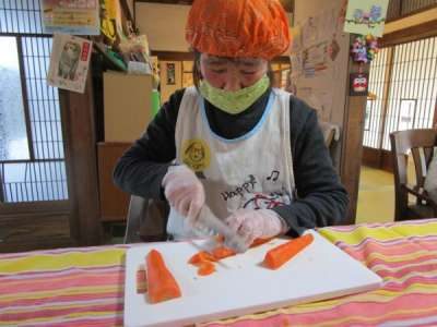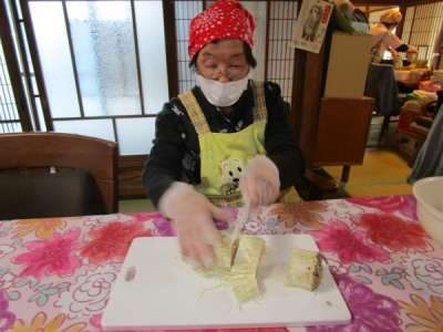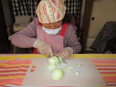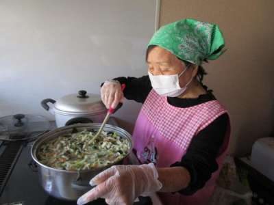 こちらの母たちはみそ汁の具材を切ってくださいます🔪