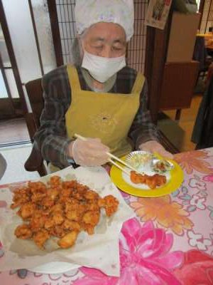 美味しくできた昼食を頬張る皆さんの笑顔・・・