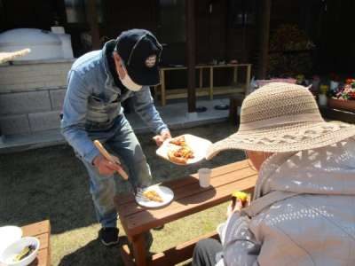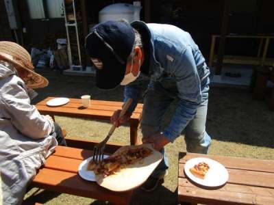 早速 ピザを焼き始めて下さいました手 (チョキ)