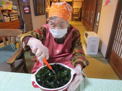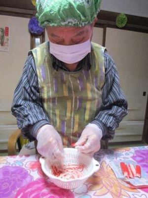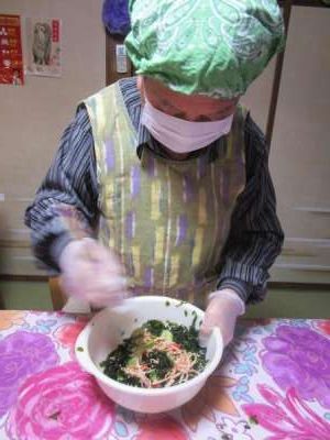 わかめ、かにかま、きゅうり、ごまを混ぜて