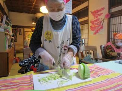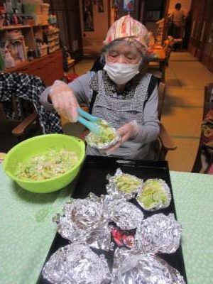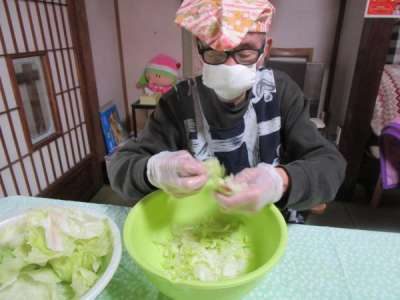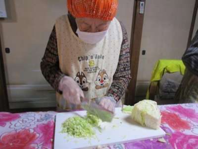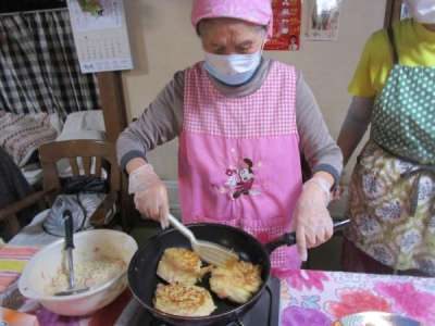 具材には卵、キャベツ、桜エビ、揚げ玉をまぜて・・・