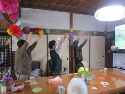 毎日 行う体操も画面を見ながら同じ動きをします