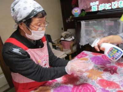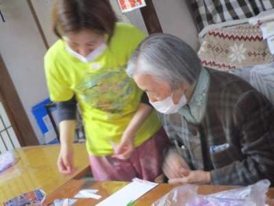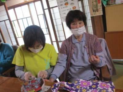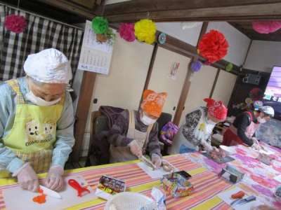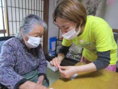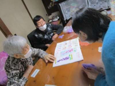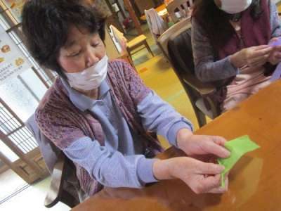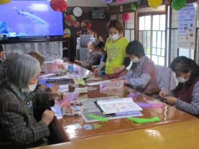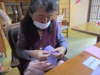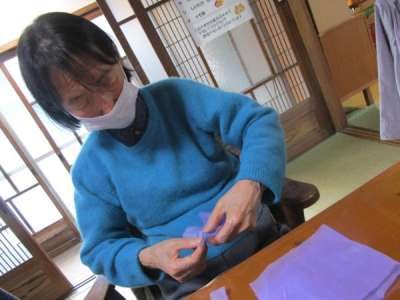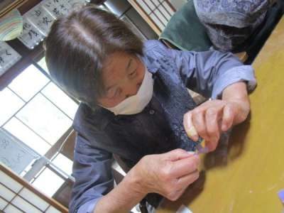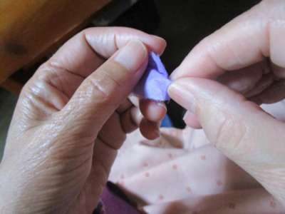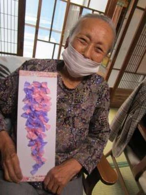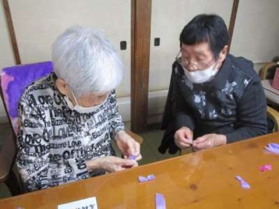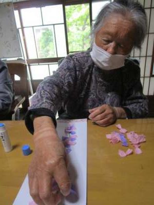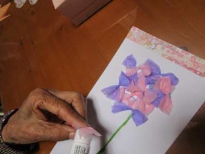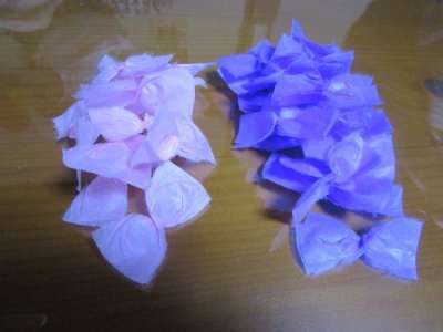 紫やピンクのお花紙を使って藤の花を作っていきます