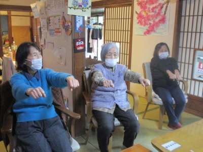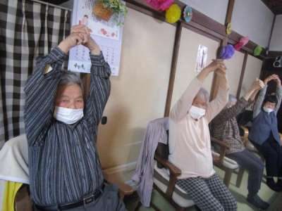 頸・上肢下肢・体幹の軽い運動を行います