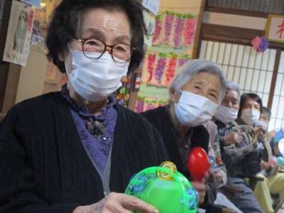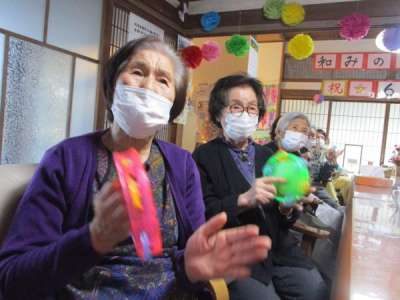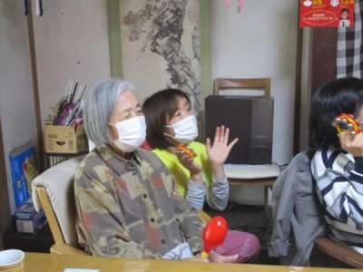 タンバリンやマスカラなどで盛り上げます