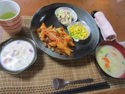 今日の豆乳バナナヨーグルトはリンゴも入れてさらに