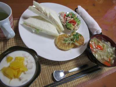サンドウィッチの具材のツナオニオンとハムレタスも