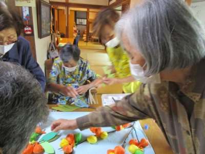 壁面飾り作りは 皆で ワイワイ楽しく協力しながら
