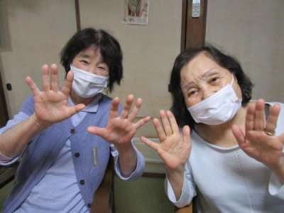 笑顔で元気いっぱい挨拶して下さる母たち手 (パー)わーい (嬉しい顔)手 (パー)