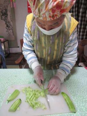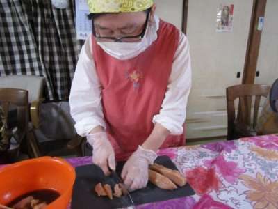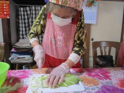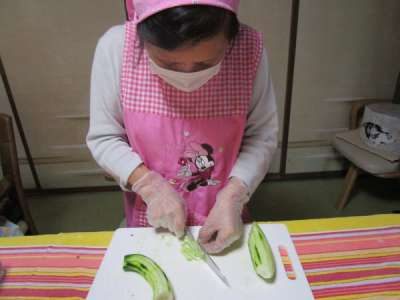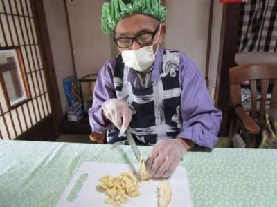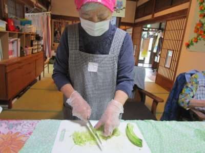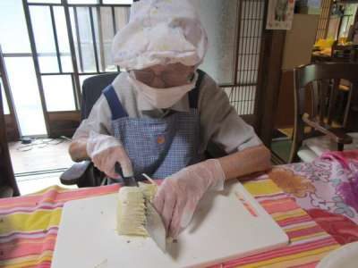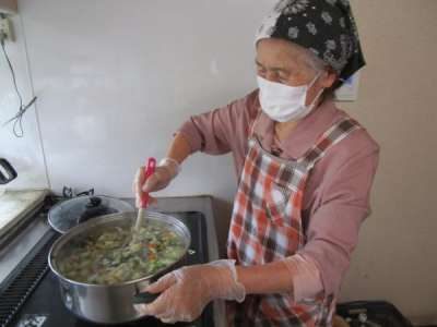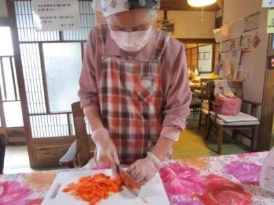 味噌汁の食材を切って下さる母たちdouble exclamation