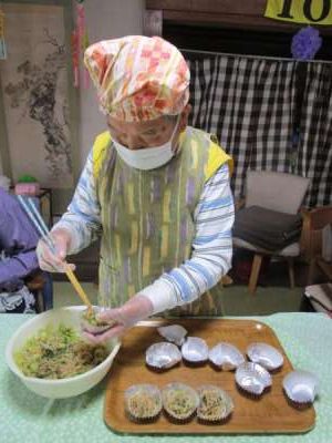 認知症予防レシピに基づきスタッフが皆さんと一緒に