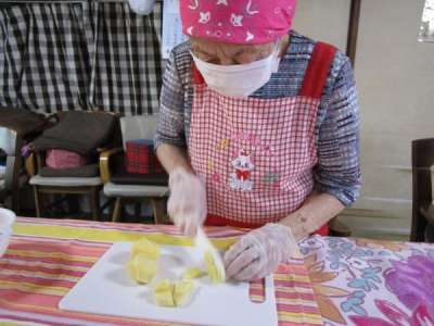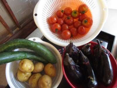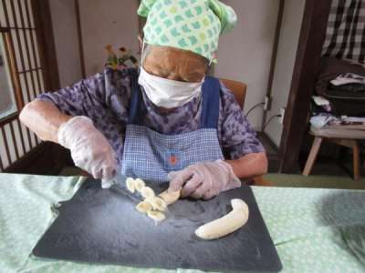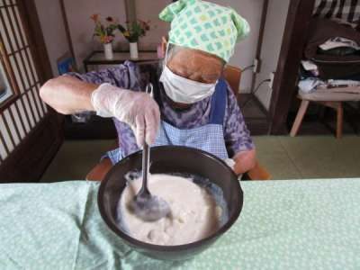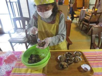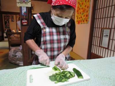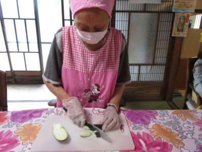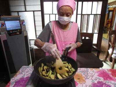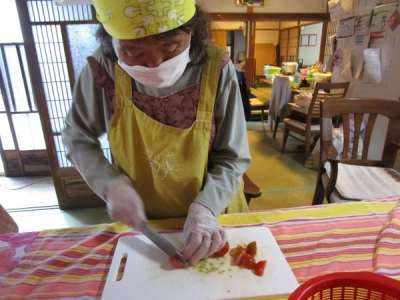 幸望庵の畑で採れた新鮮野菜を使って昼食作り