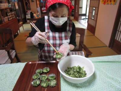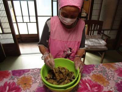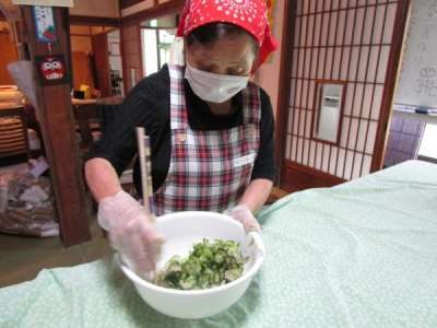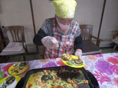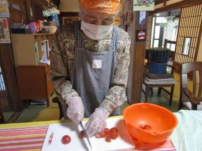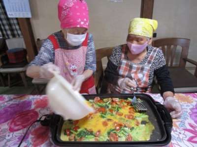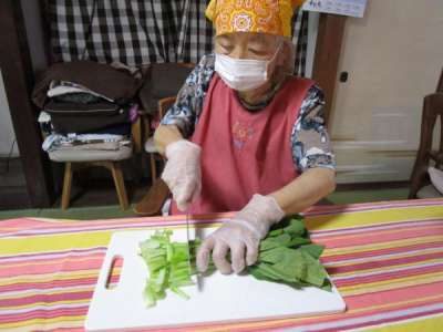 こちらの母たちには小松菜トマト卵炒めをお任せ