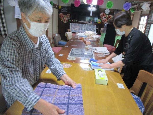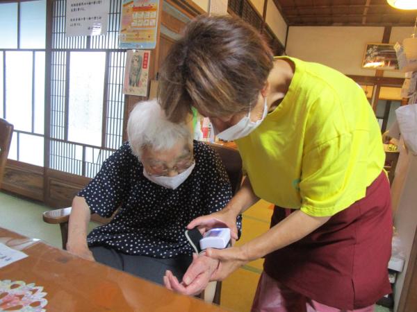 朝会の前には 血圧、体温等を計り 健康チェックを行います