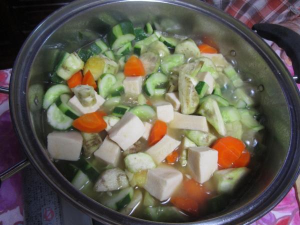 人参・きゅうり・高野豆腐・ナス・じゃがいもを入れた