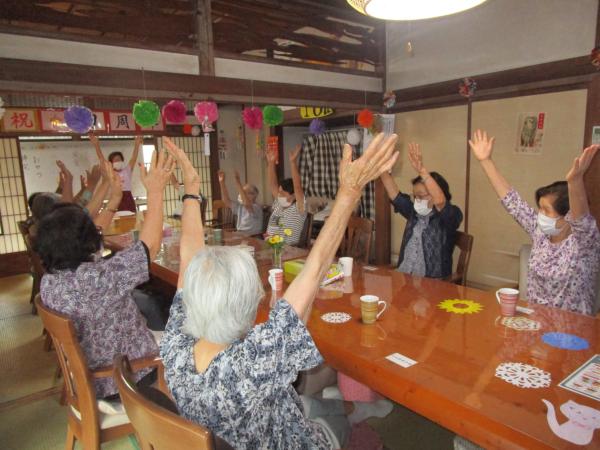 歌謡体操では画面を見ながらしっかり身体を動かし