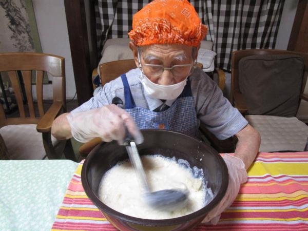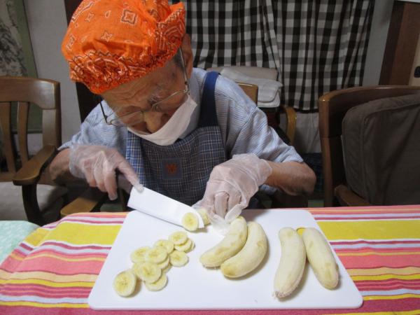 豆乳、ヨーグルト、バナナを入れてまぜる